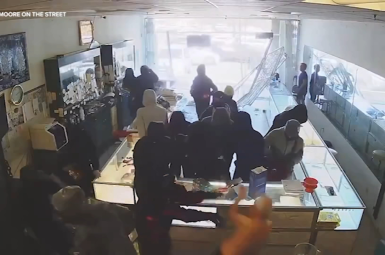 A violent daytime robbery in San Jose An elderly jewelry store owner in San Jose, California, was violently shoved to the floor after a group of masked robbers crashed an SUV into his shop before...