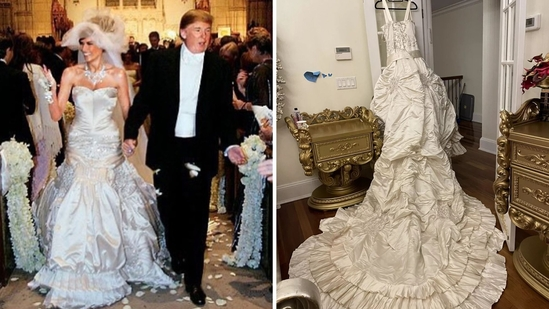 Melania Trump’s iconic Christian Dior wedding gown, designed by John Galliano, has reportedly surfaced for auction at a fraction of its original cost. The gown, which she wore to marry Donald Trump in Palm Beach, Florida, two decades ago, originally cost $100,000 and weighed 60 pounds, according to Page Six.