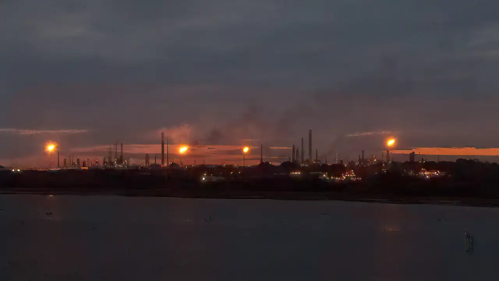 Flaring is a safety measure used by refineries to burn off excess gases, but frequent or unplanned flaring events can release pollutants that may harm nearby communities.