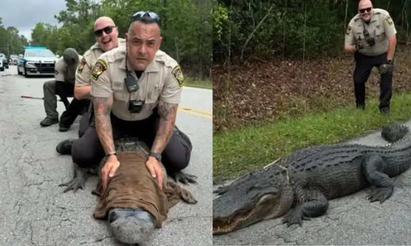 The Onslow County Sheriff’s Office said deputies teamed up with North Carolina Wildlife Resources officers to capture the “prehistoric perp” after it was spotted “loitering near the double yellow line on Old 30 Road.”