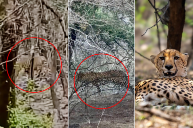 In a scene that feels almost scripted by nature itself, three of India’s most elusive big cats were spotted within the same stretch of forest at Ranthambore Tiger Reserve. A tiger, a leopard, and a...