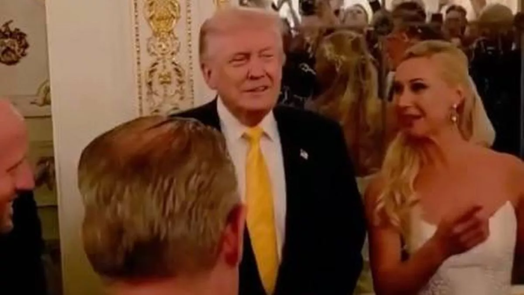 A quiet Florida wedding turned into a viral spectacle after US President Donald Trump unexpectedly walked into the reception at Mar-a-Lago and launched into an impromptu monologue about getting into heaven. The incident, captured on video and now making the rounds on social media, has revived a long-running discussion about Trump’s habit of appearing unannounced at private events held at his properties.