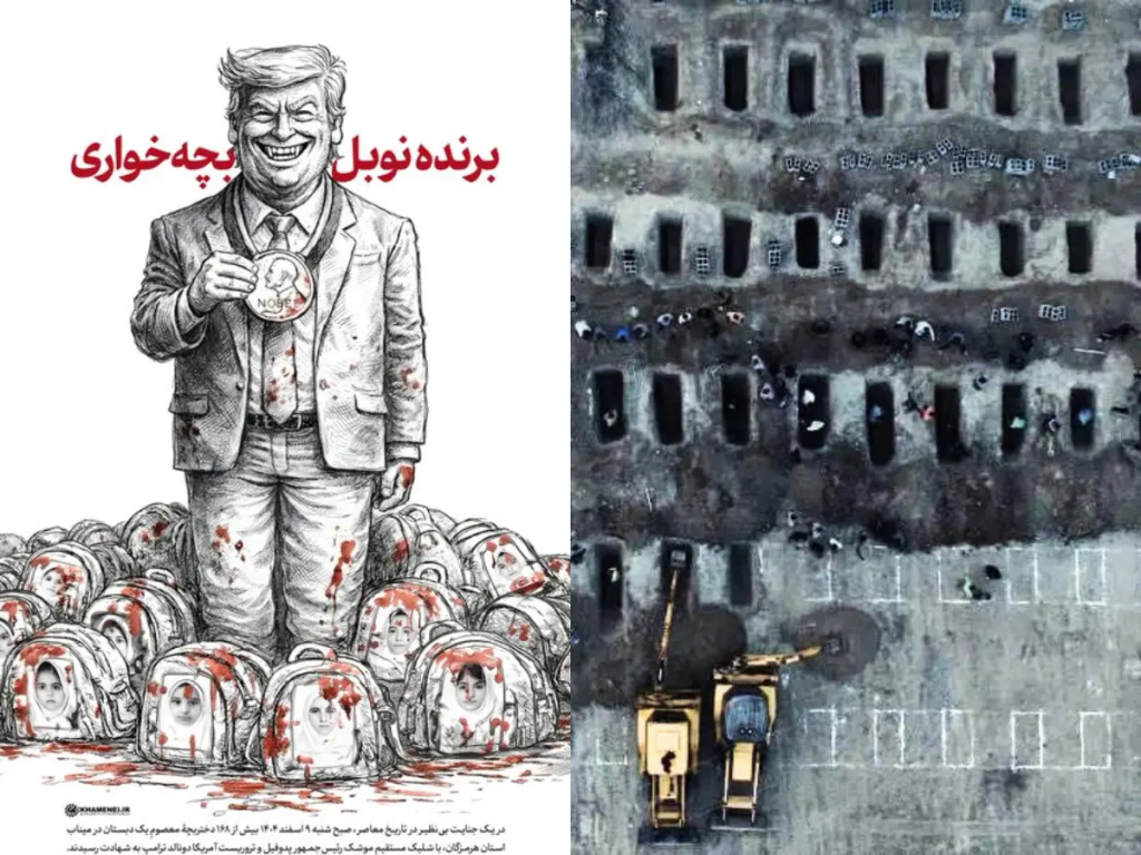 Iran’s official messaging took a stark turn this week after a graphic cartoon of U.S. President Donald Trump appeared on the X account associated with Iran’s late Supreme Leader Ayatollah Ali Khamenei. The illustration, captioned “Nobel Cannibal,” surfaced as tensions intensified over a deadly missile strike that destroyed a girls’ elementary school in the Iranian city of Minab. The attack has become one of the most controversial and emotionally charged incidents of the ongoing Iran-U.S.-Israel conflict.